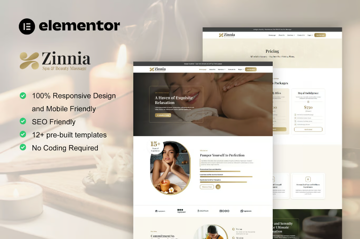 Zinnia – Spa & Beauty Care Elementor Pro Template Kit